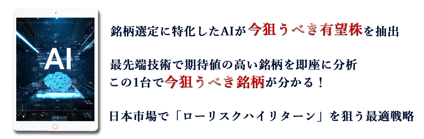最先端技術で構築されたAIが国内4,000社の銘柄を膨大なデータと共に「これからどういったトレンドが動くのか」「どんな銘柄が注目されるのか」 という部分を予見します。